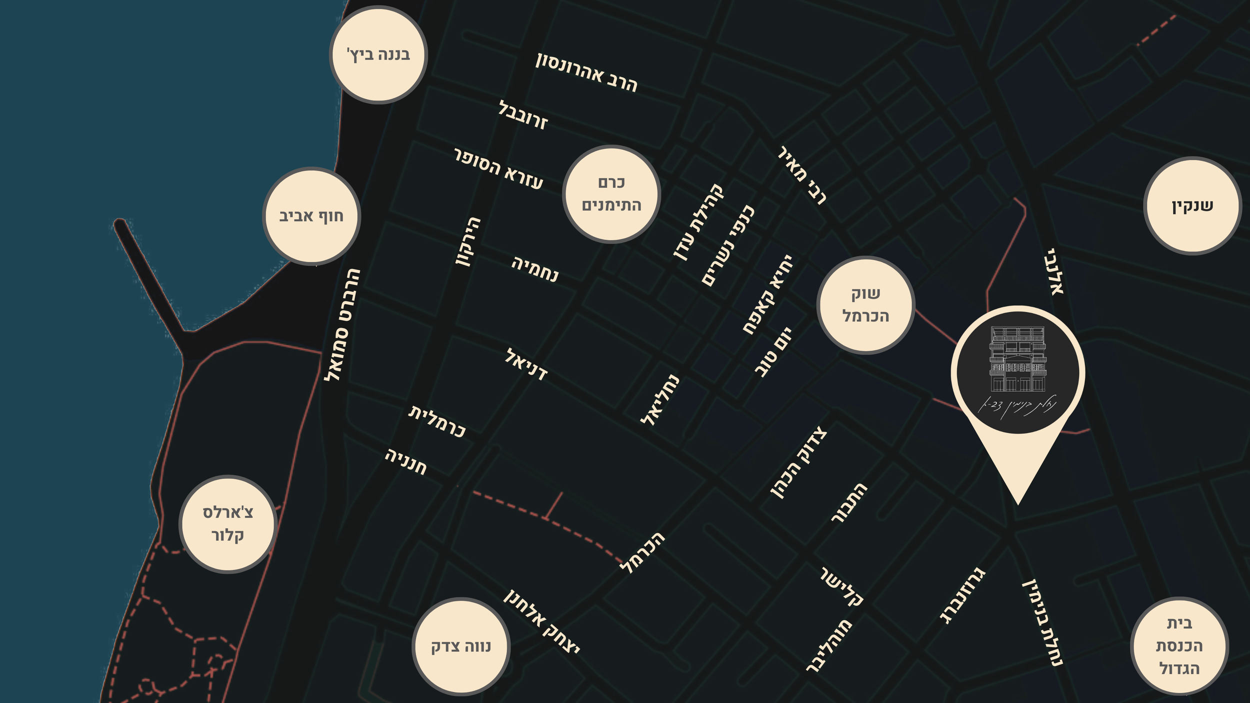 When you leave the apartment, you spill into a pedestrian street Nahalat Binyamin The bustling one with life on its northern side is the Carmel Market and the young and kicking Sheinkin Street, on its southern side the fashionable Rothschild Boulevard. If you turn west a walking distance will stretch in front of you the beautiful coastline of Tel Aviv with a variety of restaurants, Cafes, bars and entertainment venues.